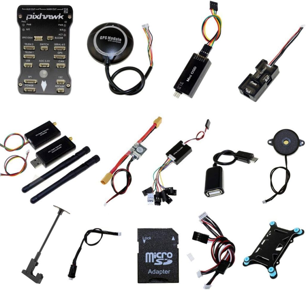 - Pixhawk PX4 Flight Controller: The brain of your drone, the flight controller maintains stability and controls flight characteristics. The Pixhawk PX4 is a reliable option featuring a powerful 32-bit processor, a safety switch, a buzzer, and the ability to connect with various expansion modules. buy here